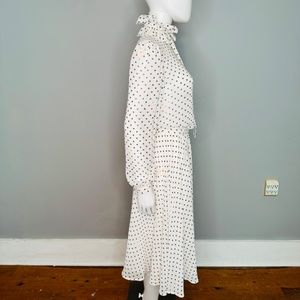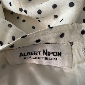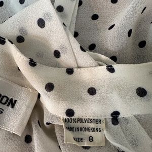 Albert Nipon vintage blouse & skirt set. White with most black polka dots and few yellow, green and red dots. It's in good condition.