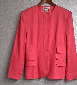 Albert Nipon Boutique Bright Pink 100% Linen Blazer Size 8