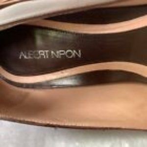 Albert Nipon Vintage Brown Leather Pointed Toe Kitten Heel Pumps - Size 8