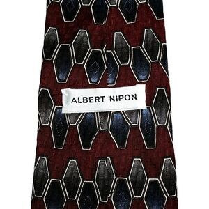 Albert Nipon Burgundy Navy Tie Silk Necktie 4 Inch Wide 58 Long Additional Details: Pictures may have shadows or light spots that are from the camera angle or flash. No stains or faded areas. Excellent used condition.