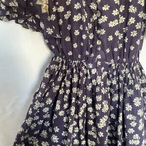 Albert Nipon Floral Print Ruffle Sleeve Button Front Dress Size 6 Purple Tan