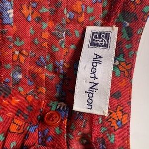 Albert Nipon Long Sleeve red floral button front a line dress small Vintage
