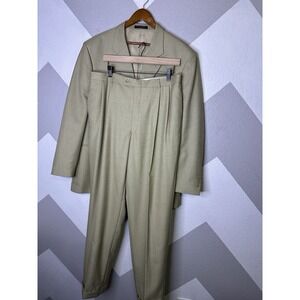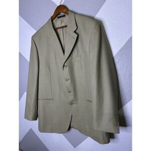 Albert Nipon Mens 2-Piece Suit Silk Sharkskin Wool Beige R44 Blazer, Pants 34x32