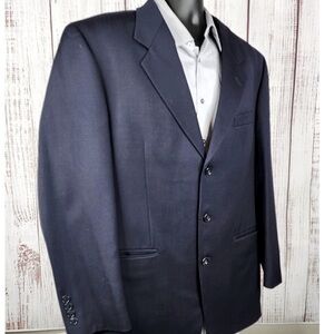 Albert Nipon Suit Mens 46R Navy 3 Button Wool Color Black