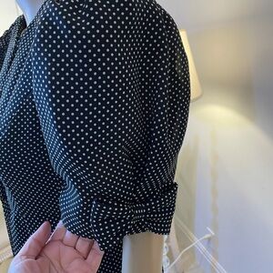 Albert Nipon Executive Dress with polka dots. Made in USA complete with union tags. Perfect Condition. Measurements are taken laying flat and are in pictures. This dress has padded shoulders and is lined. Beautiful puffy sleeves with added bows. The ultimate pin up dress!