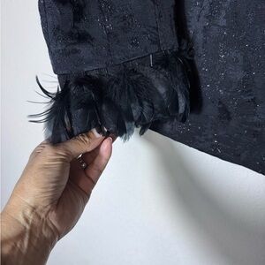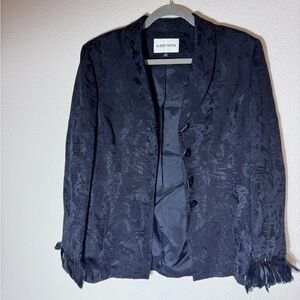 Albert Nipon Women’s Black with Silver Specks Textured Jacket Feather Cuffs 8