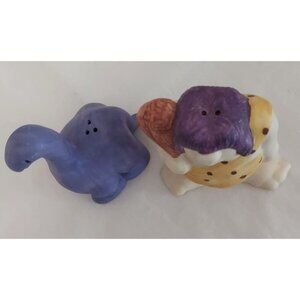 Albert Price Porcelain Caveman and Dinosaur Salt And Pepper Shakers 3.5" Vintage