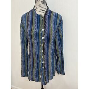 Albert and Pearl 100% Silk Boho Retro Eclectic Abstract Striped Blouse Size L
