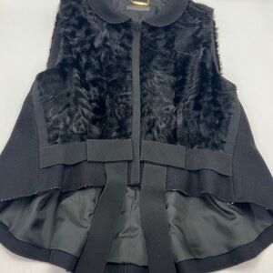 Stylish black fur vest with a sleek design. Perfect for layering.