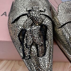 Alberta Ferretti Flat Shoes Womens 36 Gold Leather Mia Mule Slip On Banana
