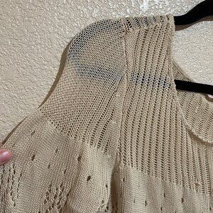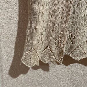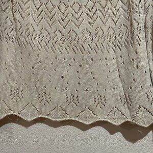 Absolutely beautiful cream sweater! The knit detail on this is stunning! It’s in great condition and will be perfect for work or play. Just put a cami under and wear with anything! Pointelle knit pattern