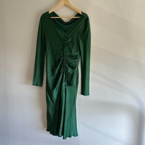 Alberta Ferretti Silk Green Long Sleeve Midi Dress