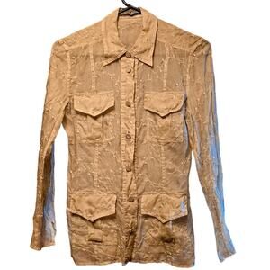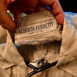 Elevate your wardrobe with this exquisite Alberta Ferretti silk button-up shirt! Crafted in Italy, this luxurious piece features delicate embroidery, adding a touch of elegance to any outfit.