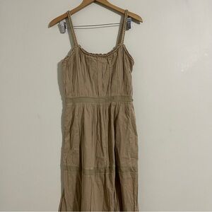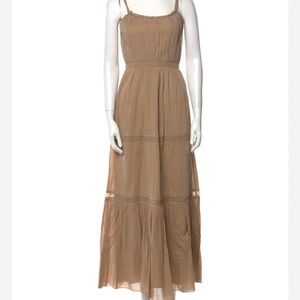 Alberta Ferretti tan tier spaghetti strap maxi dress