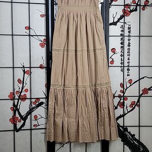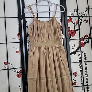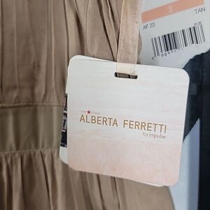 Alberta Ferretti nwt Tan Tiered Spaghetti Strap Cotton Dress