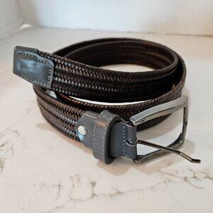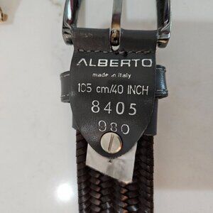 Alberto Braided Leather Elastic Stretch Belt Grey Silver Buckle 40 Inch Italian