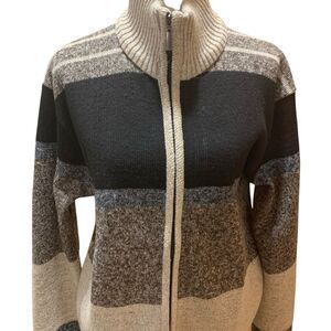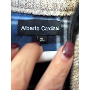 Alberto Cardinali Turtleneck Colorblock Full Zip Sweater Blue Black Grey Cream Men XL in Very Good Pre-Owned Condition