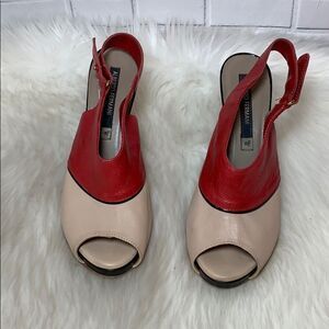Alberto Fermani Cream/Red Leather Slingbacks Sz 7