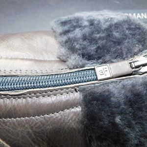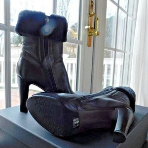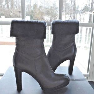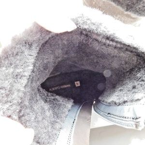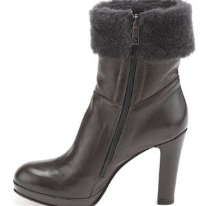 Alberto Fermani BROWN GREY Leather Boots Hand Made In Italy Retail: $ 695.00 + Tax =$736.70, NIB, Anthracite grey leather platform boot with shearling cuff trim and gunmetal hardware