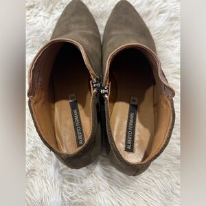 Alberto Fermani Serafina Suede Pointed Toe Booties - Size 38 US 7.5 - olive suede color - made in Italy - pre owned - great condition