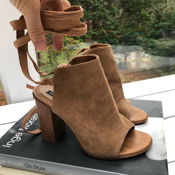Alberto Fermani Suede Open Toe Stacked Heel Booties