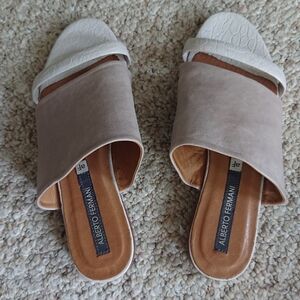 Alberto Fermani Tan and White Italian leather Slide Sandals size 6