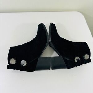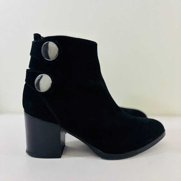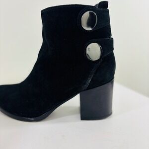 Alberto Fermani Women's Black Suede Heel Leather Ankle Boot Snap Italy Made 6.5