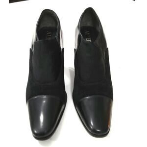 Italian luxury leather heel booties by Alberto Gozzi his craftsmanship and artistry for design is unmatched these come in a black leather with a velvet plus stretch fabric top Arch over foot, pull on they have a snipped toe and tapered block Heel they are in excellent pre-owned condition not perfect but no major flaws see photos for extra description these are high-end and I am listing so that someone else can enjoy them! They are size women's 8.5 MSRP $449