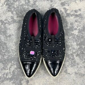 Alberto Guardiani Pull On Sneaker Patent Leather Cap Toe Jewel Studs Black 39