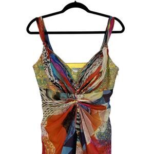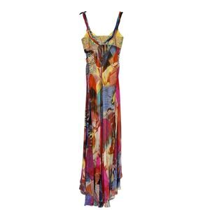 Alberto Makali 100% Silk Multicolor Abstract Print Long Evening Gown Womens 8