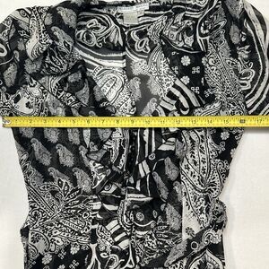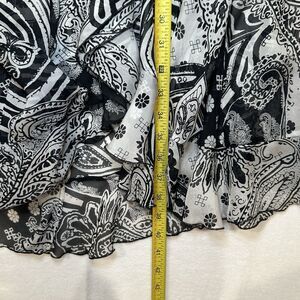 Alberto Makali 100% Silk Wrap Dress Women Size 6 Black White Paisley Ruffle Hem