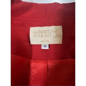 Alberto Makali 100% Wool Bright Red Open Front Draped Artsy Blazer Size S