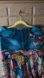 Unique asymmetrical skirt with denim top. Features vibrant multicolor fabric with artistic patterns. Perfect for a bold look.
