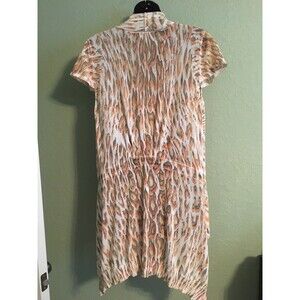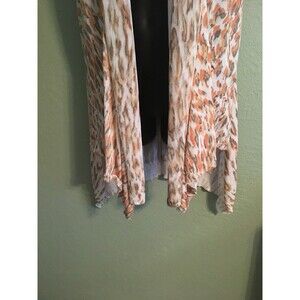 PRE-OWNED ALBERTO MAKALI LIGHTWEIGHT ASYMMETRICAL OPEN CARDIGAN SIZE L.SHORT SLEEVE,ANIMAL PRINT IN ORANGE GRAY COLOR.89% RAYON 11% POLYESTER HAND WASH OR DRY CLEAN.CARDIGAN IN VERY GOOD CONDITION NO TEARS OR STAINS,COMES FROM NON SMOKING HOME.MEASUREMENTS LYING FLAT:ARMPIT TO ARMPIT: 17"SHOULDER TO SHOULDER: 15"LENGTH CENTER BACK TO END: 30"PLEASE FEEL FREE TO ASK QUESTIONS.