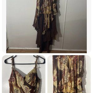 Alberto Makali Beaded Silk Flowey Dress Brown size 8