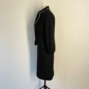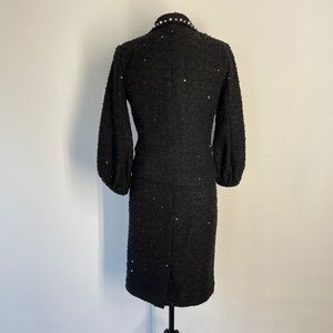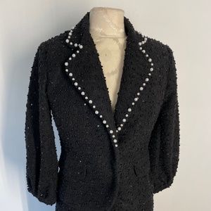 Alberto Makali Black Textured Tweed Sequin Skirt Suit Set with Pearl Det…