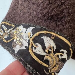 Alberto Makali Brown Wool Blend Beaded Embellished Bell Sleeve Jacket Blazer