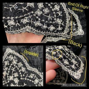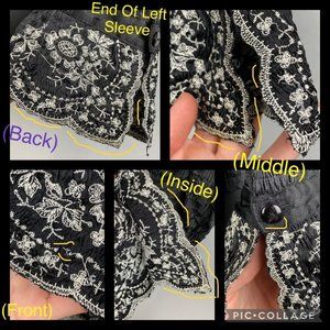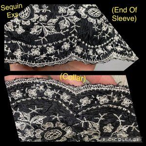 Floral embroidered and sequin accenting on collar and end of sleeves.