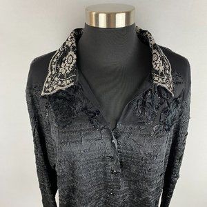 Alberto Makali Button Down Shirt Women's Size XL Crinkle Embroidered Sequins Art