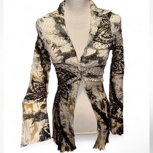 Alberto Makali Button Up Blouse Crinkle Abstract Print Long Sleeve Size S