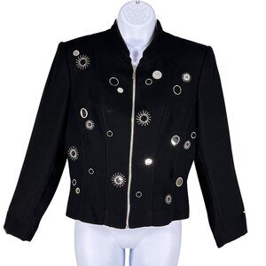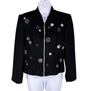 Vintage Alberto Makali Caché Womens Size 8 Medium Black Evening Blazer Silver Sunburst Star Embroidery Embellished Old Money Timeless