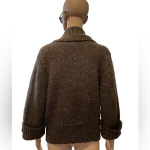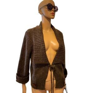 Alberto Makali Cardigan Womens M Brown Wool Boho Knit Sweater Collar Tie Front