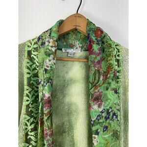 Alberto Makali Cardigan Women’s Small Green Tie Front Tie Dye Attached Scarf