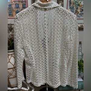 Alberto Makali Cream Lace Crochet Blazer Boho Jacket Lightweight Sheer Top Sz L
