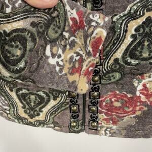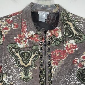 Alberto Makali Full Zip Jacket Womens L Taupe Floral Metal Studs Boho Edgy Artsy