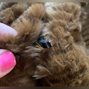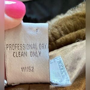 Belted rabbit fur coat/jacket/vest. Pit to pit measures 20.5 inches and the length measures 32 inches. The closures are unique. You put a pin through a loop and then fold over. I tried to get close up photos, but you really can't tell what it is. This is a gorgeous jacket! I'm not sure if it's vintage. Excellent preloved condition!