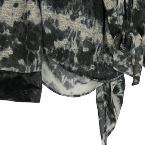 Alberto Makali Gray Cardigan Sweater Women Large Shiny Collar Sheer Knit Chic