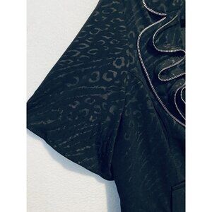 Alberto Makali Jacket Womens 16 Black Abstract Swirly Zipper Detail Ruffle Hem