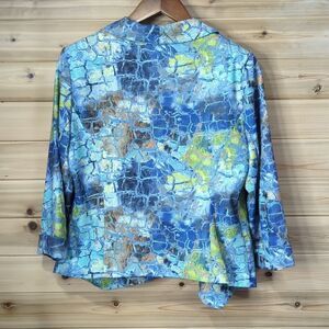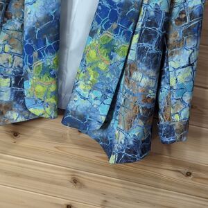 Alberto Makali Jacket Womens Medium Blue Patterned Blazer Open Front Art