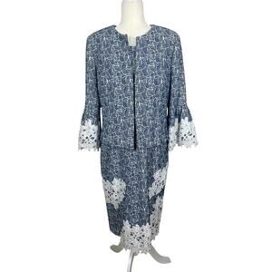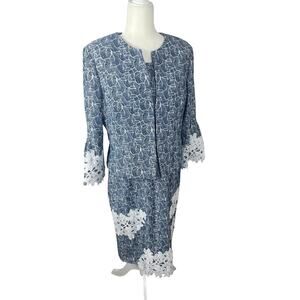 Alberto Makali Lace Trim Midi Dress Set Blue White Mother of The Bride Size 12/L
